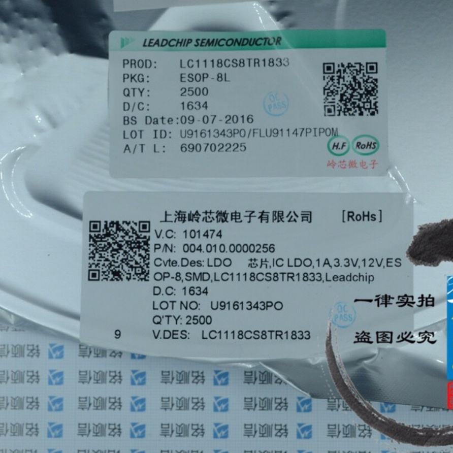 ตัวควบคุม LC1118 LC1118CS8TR1833 ของแท้ใหม่ 1A 3.3V ไอซีชิปแบบ SMD สำหรับติดตั้ง ทนอุณหภูมิการใช้งาน