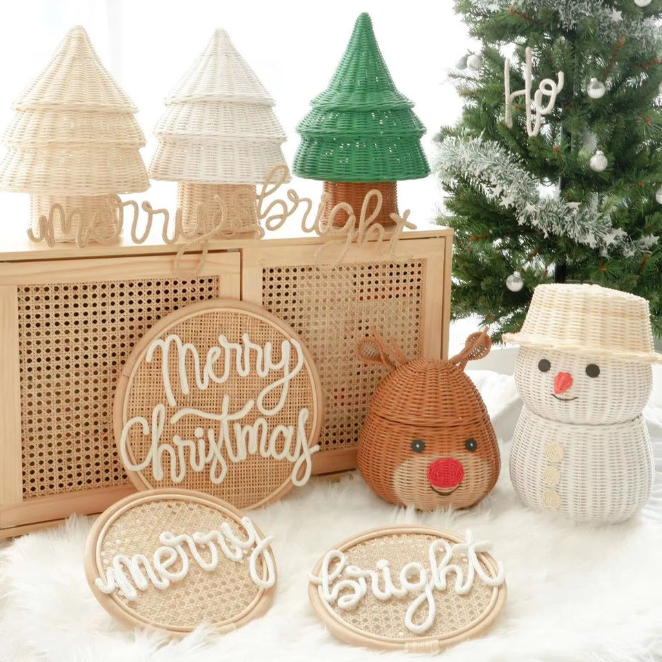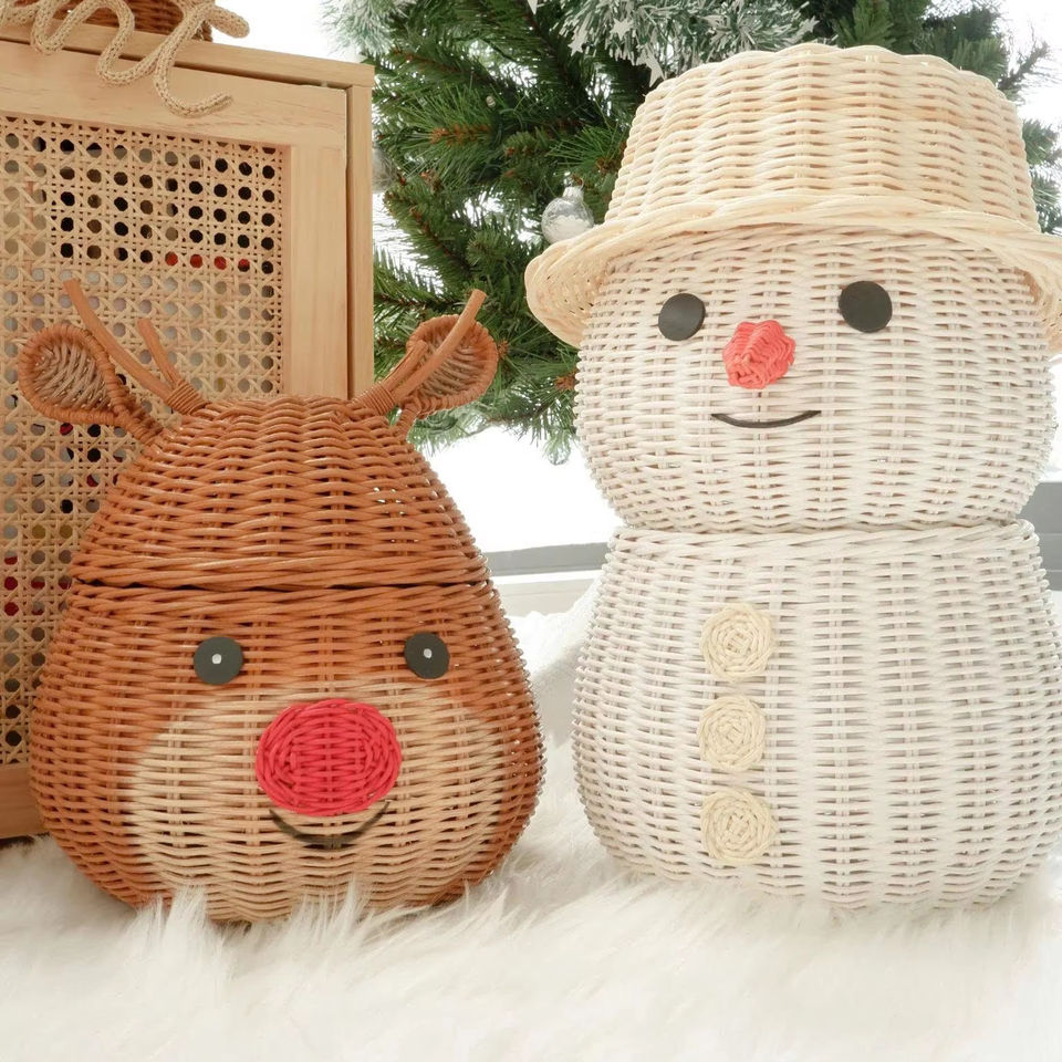 ตะกร้าเก็บของรูปกวางเรนเดียร์พร้อมฝาปิด กล่องของขวัญคริสต์มาส น่ารัก สวยงาม เป็นมิตรกับสิ่งแวดล้อม งานฝีมือเวียดนาม ทำด้วยมือ สำหรับเทศกาลวันหยุด อบอุ่น น่ารัก สำหรับฤดูหนาว