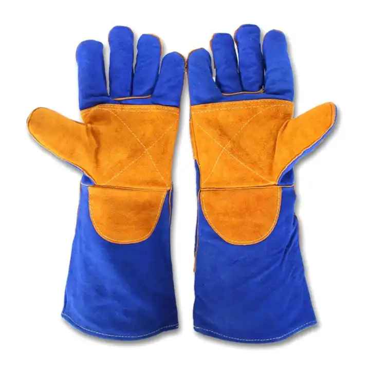 ถุงมือนิรภัยหนังวัวเสริมความแข็งแรงทนทานทนทานต่อการก่อสร้างทนความร้อน