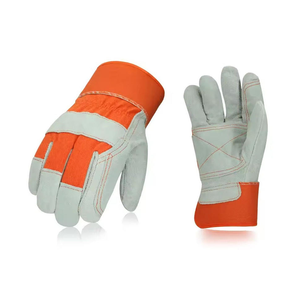 ถุงมือทำงานหนังวัวเสริมถุงมือนิรภัยสำหรับใช้ในครัวเรือนทนทานต่อการเสียดสีป้องกันส่วนบุคคล