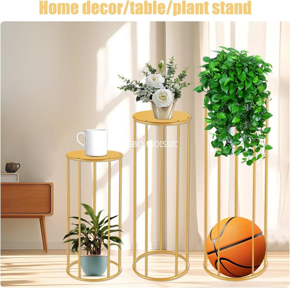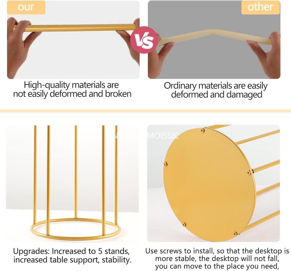ชุดแท่นวางสีทองเสริมแรงสำหรับตกแต่งเค้กแต่งงานทรงกระบอกหรูหรา