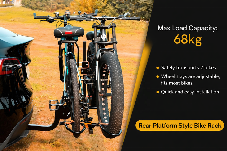 ที่ยึดจักรยานสำหรับติดท้ายรถยนต์แบบเหล็กเสริมแรง 2 จุด น้ำหนักเบา ปรับได้ พับเก็บได้ ทนทาน
