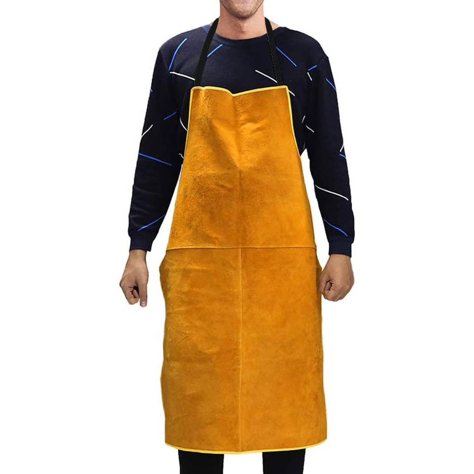 ผ้ากันเปื้อนหนังสำหรับงานเชื่อม ทนทานเป็นพิเศษด้วยการเย็บเสริมความแข็งแรง ดีไซน์ทันสมัยและใช้งานได้จริง ชุดทำงานสำหรับงานฝีมือ ผ้ากันเปื้อนหนังสำหรับงานเชื่อม