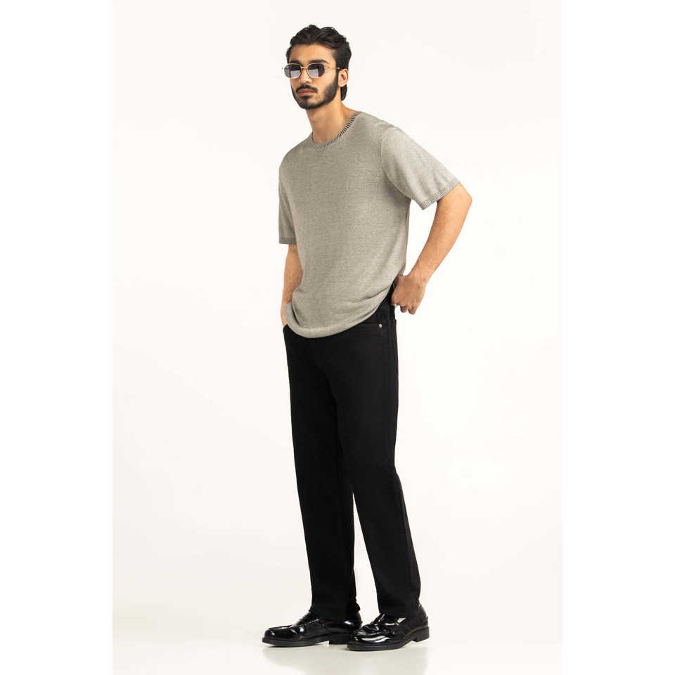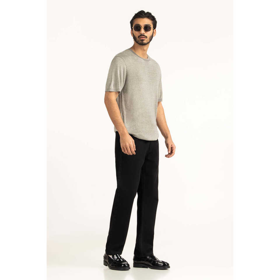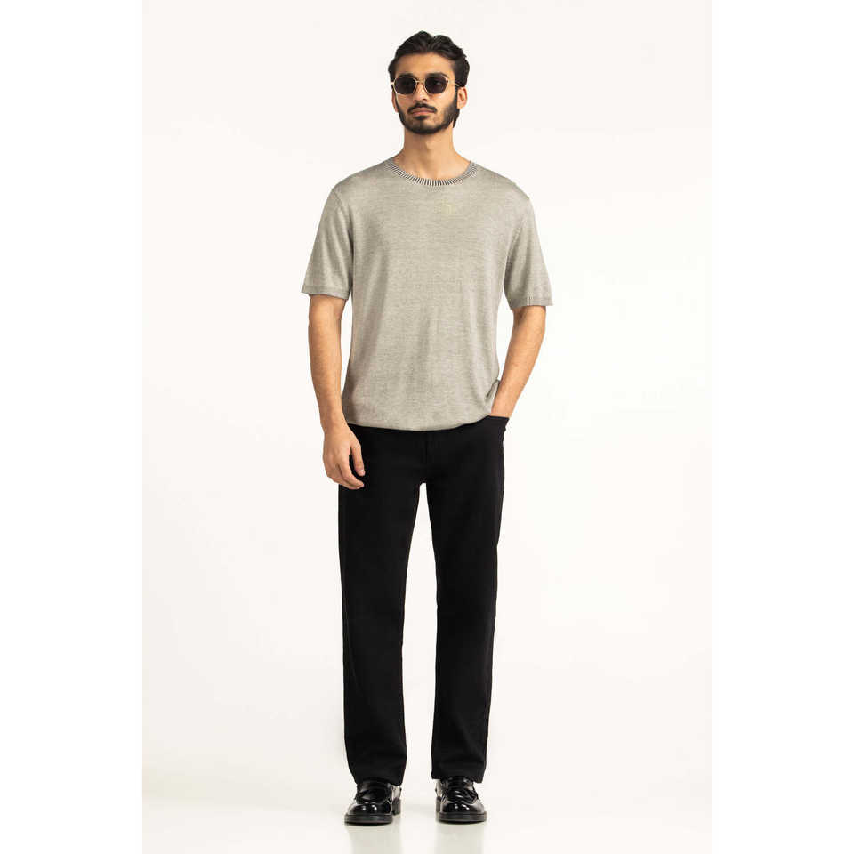 เสื้อยืดถักเนื้อผ้าระบายอากาศ ทรงพอดีตัว ยับยาก คุณสมบัติพิเศษ โลโก้ตัวอักษรแบบเรียบง่าย ความยาวสั้น รุ่น MN-TS-SS26-501 หลายขนาด