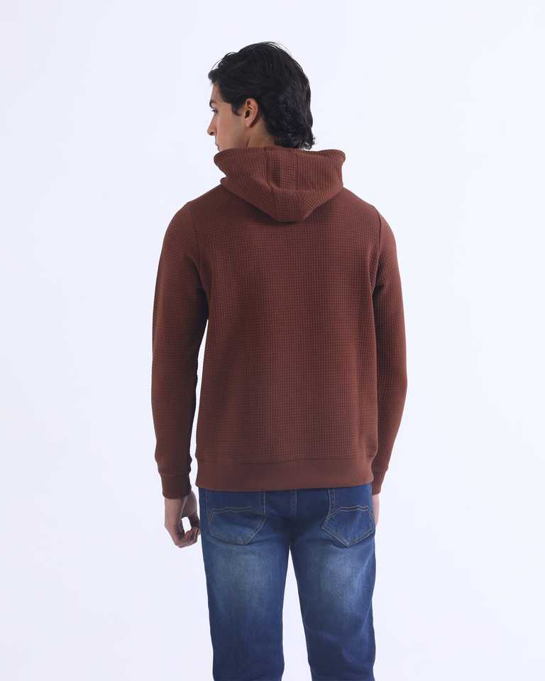 Relaxed Fit Brown Pullover Long Sleeve Zipper Comfortable Fashionable Trend-Driven Winter Wear-100% Cotton with Printed Pattern