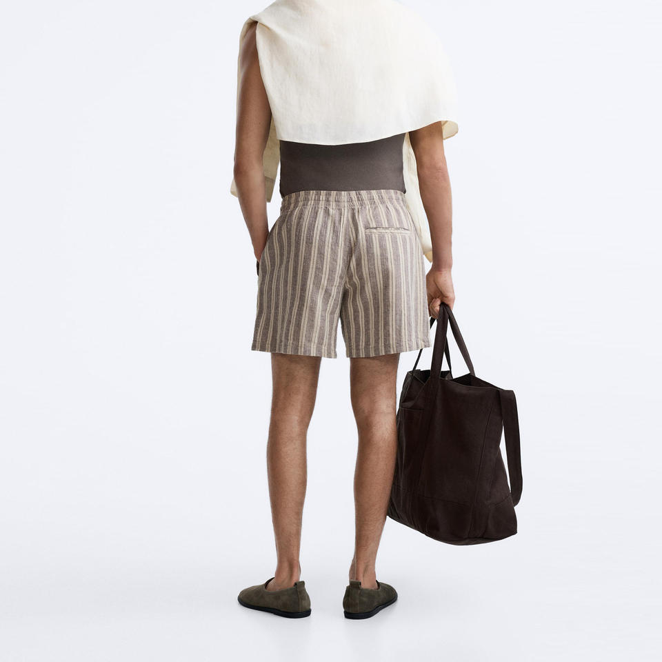 กางเกงขาสั้นผ้าฝ้ายผ้าลินินแบบยืดได้สำหรับผ่อนคลายเอวแบบมีเชือกผูกด้านหน้ามีกระเป๋าแบบปะด้านหลังมีกระเป๋า