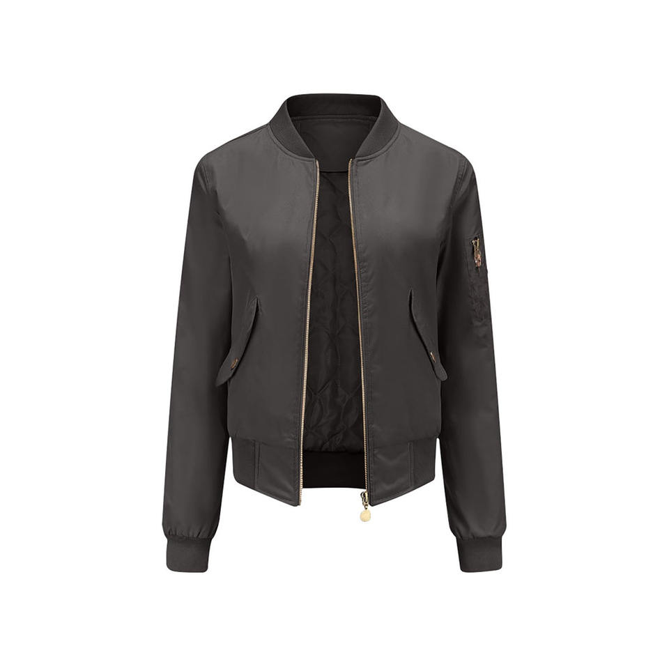 เสื้อแจ็กเก็ตบอมเบอร์สำหรับผู้หญิงรู้สึกผ่อนคลายใส่ได้พอดีตัวและมีรายละเอียดที่ทันสมัยออกแบบมาสำหรับการพักผ่อนสุดสัปดาห์และสไตล์ที่ไม่ต้องพยายาม