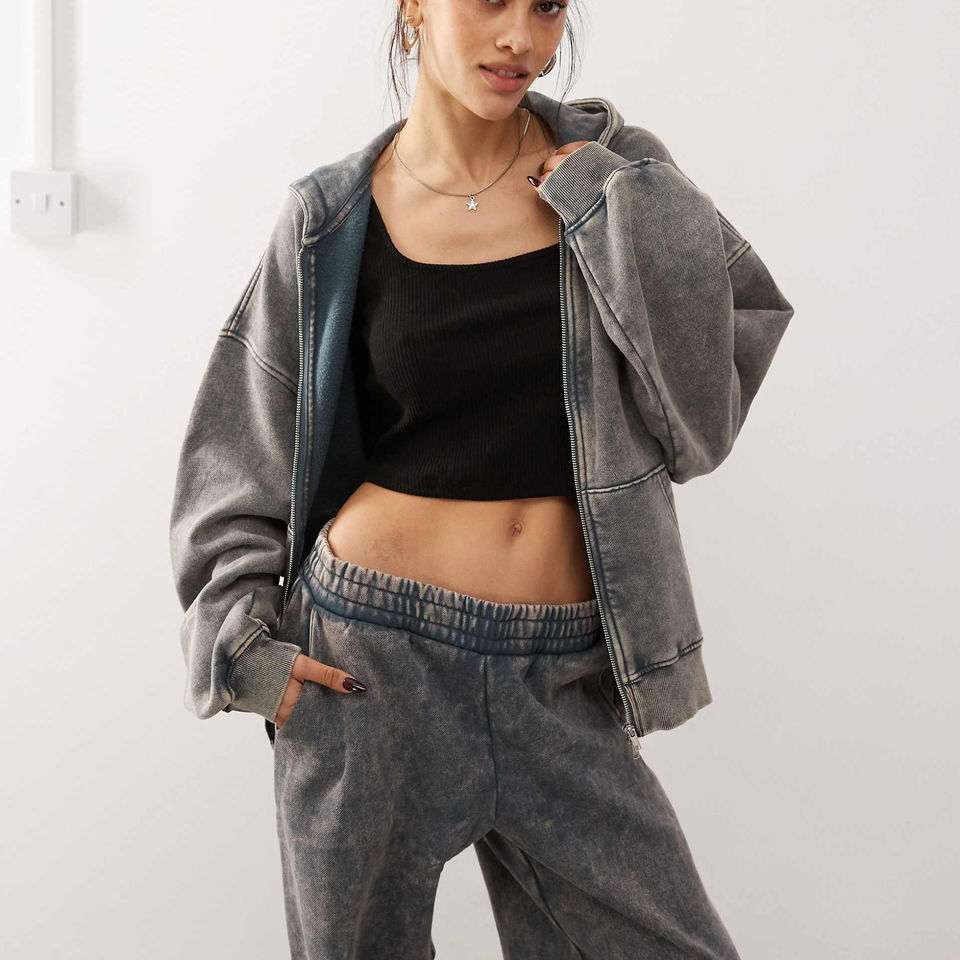Relaxed womens cropped hoodie sweatsuit set with high rise jogger pants trendy cozy outfit for gym lounge travel and casual wear
