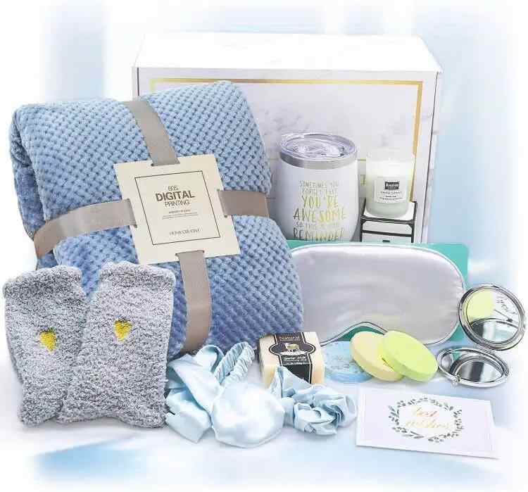 ชุดของขวัญสปาเพื่อการผ่อนคลาย สำหรับวันเกิด งานแต่งงาน ของขวัญงานเลี้ยง ผ้าห่ม เทียน ถุงเท้า แก้วน้ำ ชุดของขวัญหายป่วยเร็วๆ นี้ ชุดของขวัญดูแลตัวเองสำหรับผู้หญิง