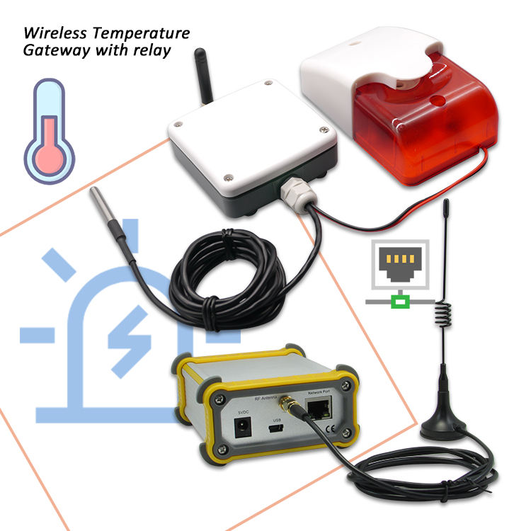เซ็นเซอร์อุณหภูมิสัญญาณเตือนอุณหภูมิแบบไร้สายรีเลย์