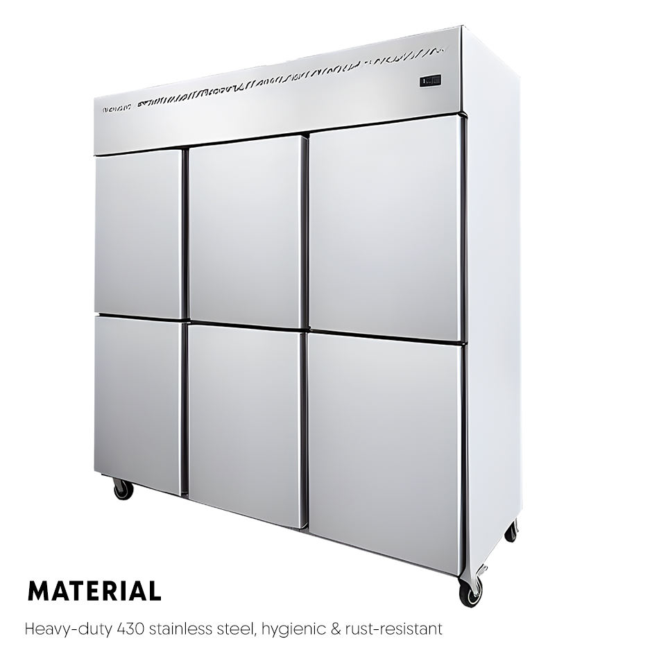 ตู้แช่แข็งสแตนเลส6ประตูพร้อมระบบระบายความร้อนด้วยอากาศดีไซน์ตั้งตรงสำหรับร้านอาหารขนาดใหญ่โรงแรมหน่วยบริการจัดเลี้ยง
