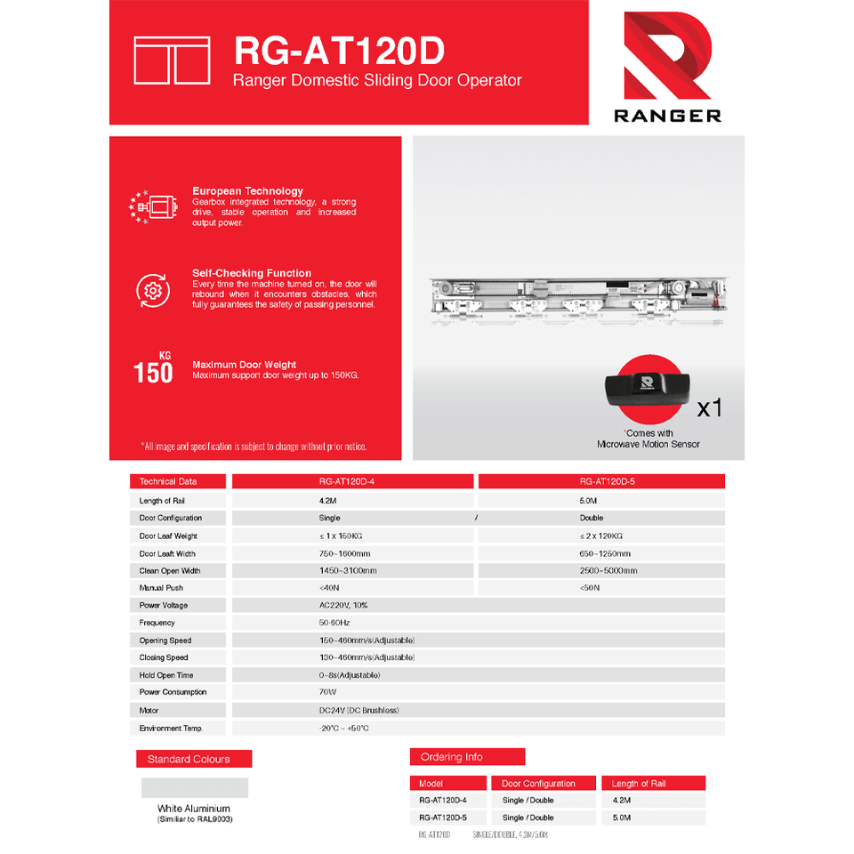 ตัวควบคุมประตูบานเลื่อนภายในบ้านที่เชื่อถือได้ ราง 4.2 เมตร รับน้ำหนักได้สูงสุด 150 กิโลกรัม ควบคุมได้อย่างราบรื่น ประสิทธิภาพเสถียร ผู้นำด้านการส่งออกจากมาเลเซีย
