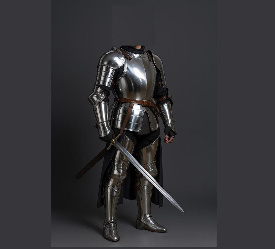 ชุดเกราะโลหะทั้งตัวจากผู้ผลิตที่เชื่อถือได้ ผลิตขึ้นเพื่อการจำลองยุคกลาง การจัดแสดงทางประวัติศาสตร์ และการตกแต่งภายในราชสำนัก
