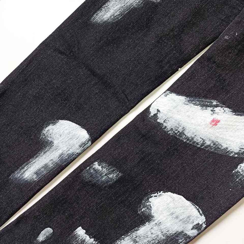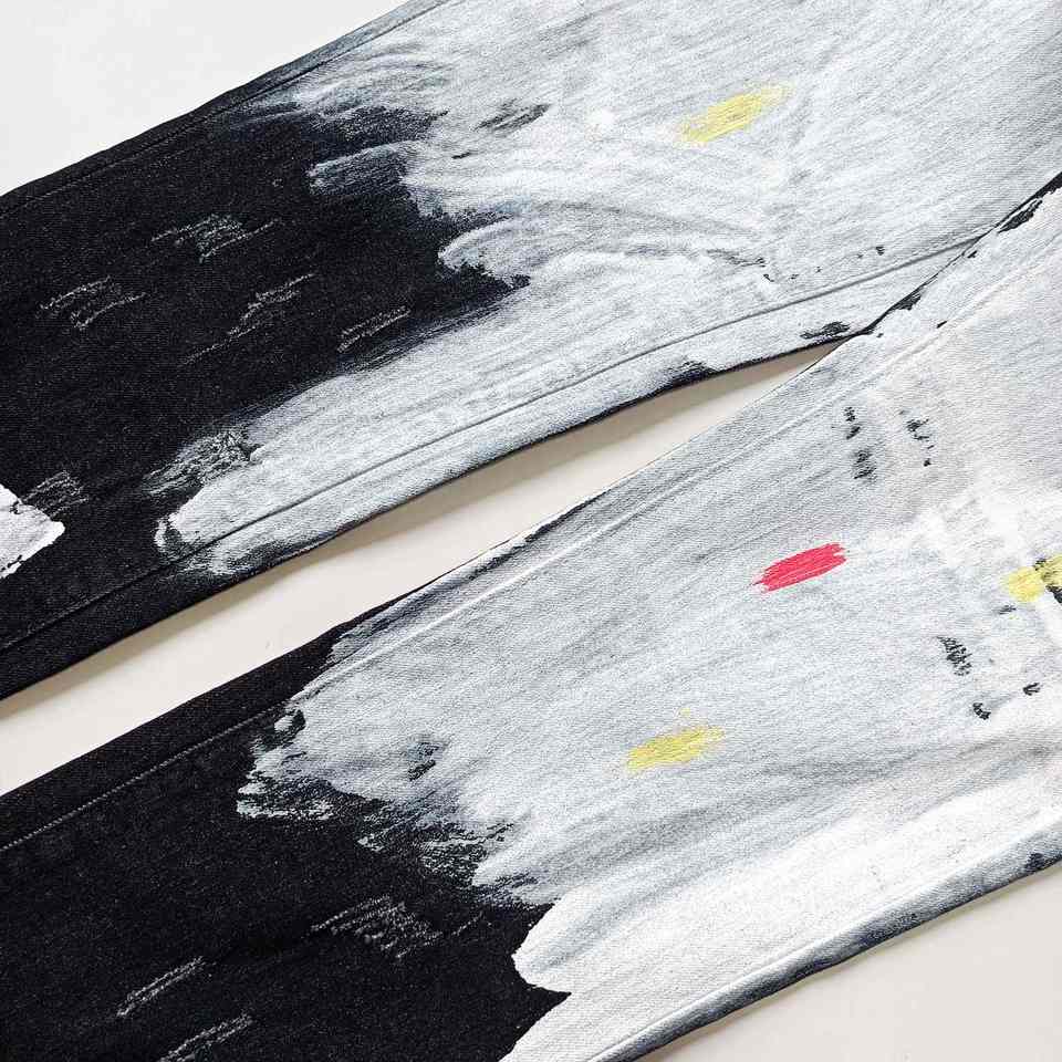 บริการการผลิตที่เชื่อถือได้สำหรับแบรนด์ส่วนตัวเพื่อเปิดตัวกางเกงยีนส์พิมพ์ลายในแบรนด์ของตัวเอง