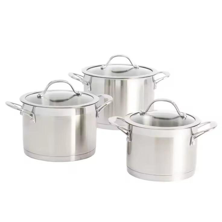 ชุดหม้อสแตนเลสคุณภาพดี ทนทาน พร้อมฝาแก้ว 3 ชิ้น ผสมผสานความทนทาน ความปลอดภัย และสไตล์อย่างลงตัว