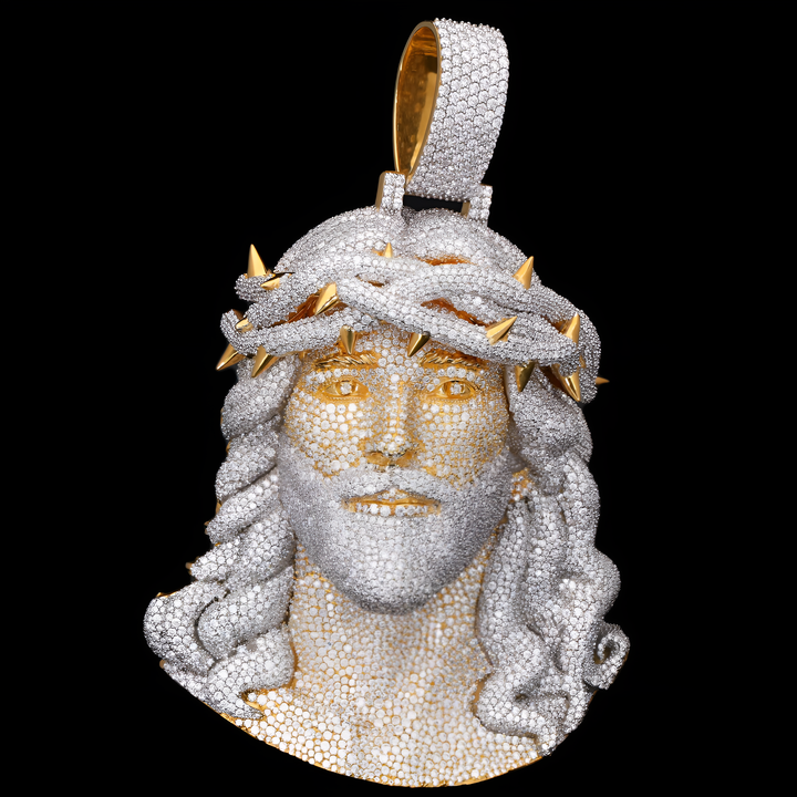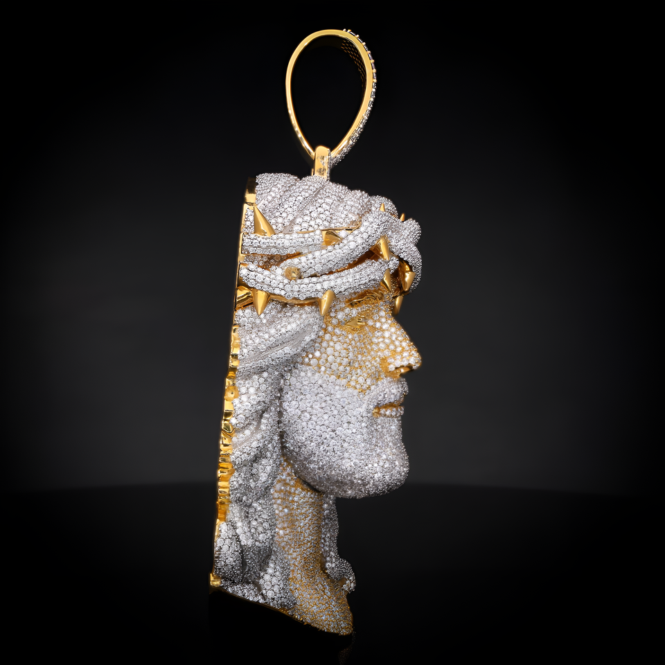 จี้พระเยซูสำหรับผู้ชายและผู้หญิง ดีไซน์หัวพระเยซูประดับเพชรโมอิสซาไนต์ทรงเหลี่ยมเจียระไนสวยงาม วัสดุเงินแท้ 925 สไตล์ฮิปฮอป เหมาะสำหรับงานปาร์ตี้