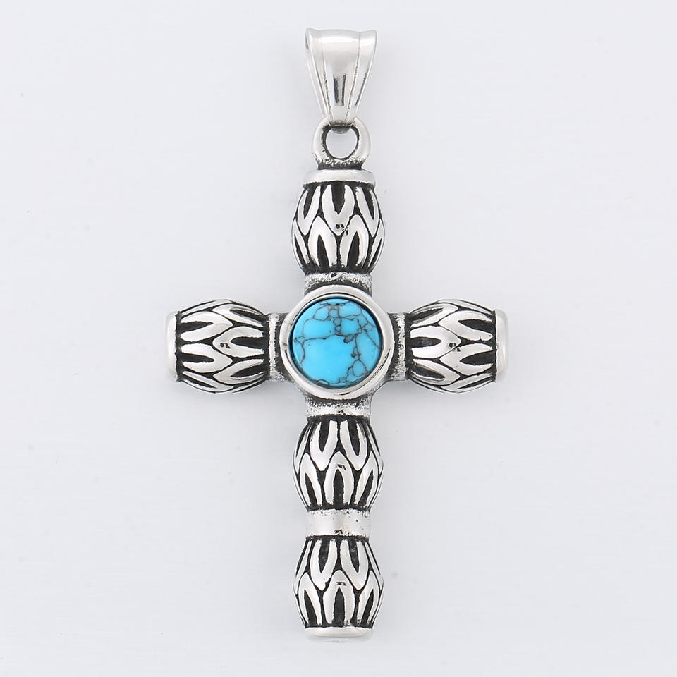 Religious Cross Jesus Turquoise Anti Non Tarnish Stainless Steel Waterproof Pendant Fashion Jewelry Necklaces for Men Wholesale