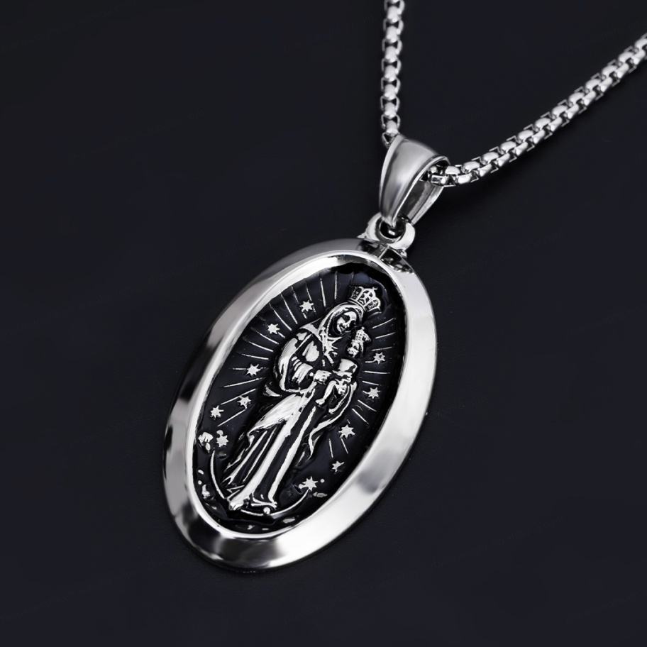 สร้อยคอเครื่องประดับทางศาสนา สร้อยคอคริสเตียนรูปพระแม่มารีพร้อมจี้เหรียญทอง สร้อยคอสแตนเลสจากโรงงานโดยตรง