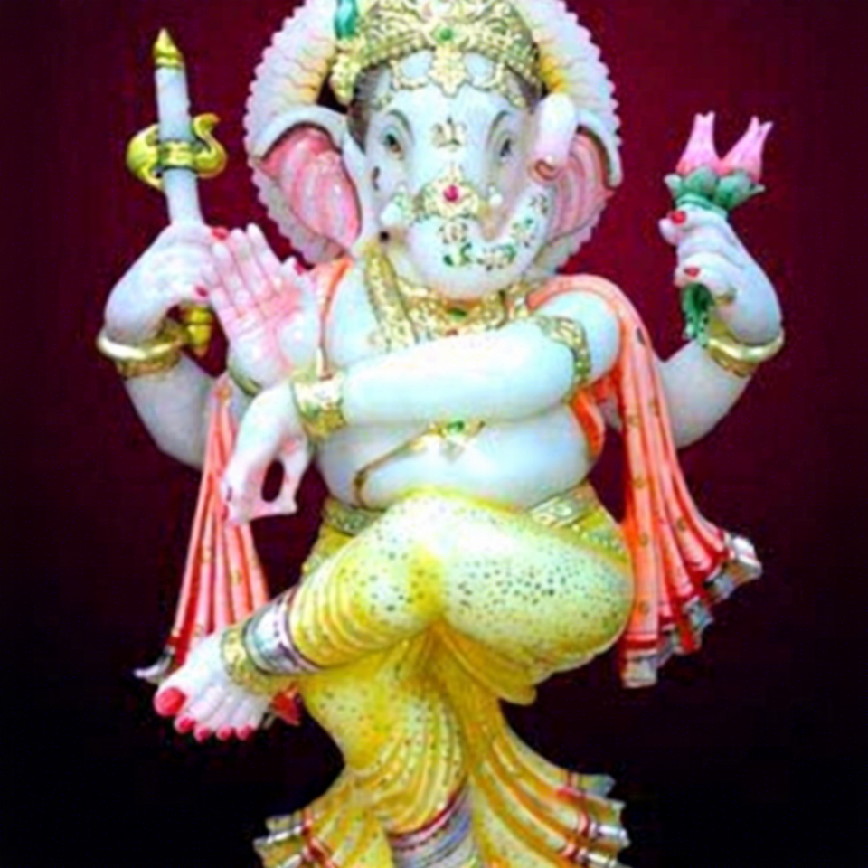 รูปปั้นหินอ่อนทางศาสนาของการเต้นรำรูปปั้นพระพิฆเนศทำด้วยมือ
