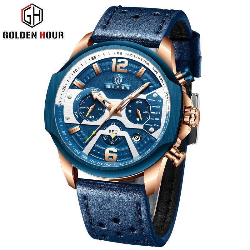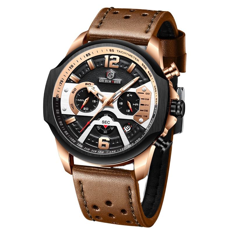 Relogio Masculino Golden Hour 130 Mens Watches Top Brand Luxury Men Sport Wristwatch Leather Quartz Watch erkek saat