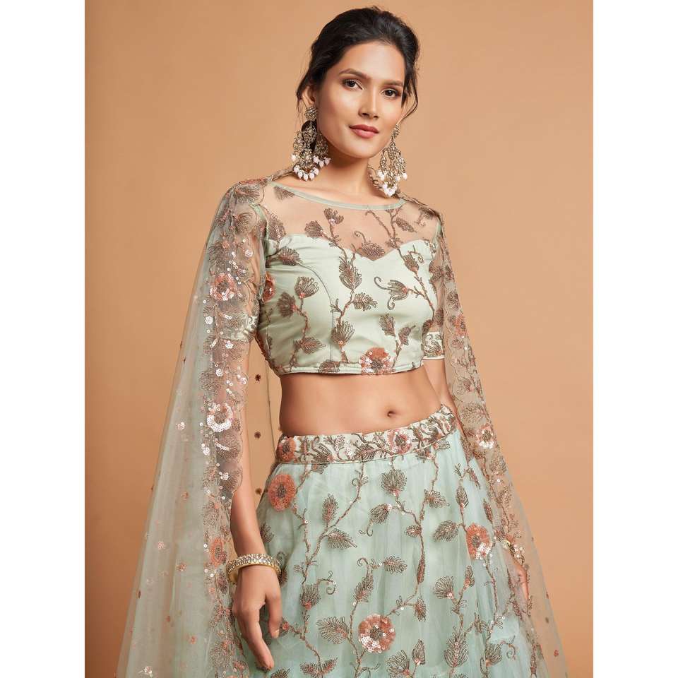 ชุดตาข่ายด้ายสีเขียว pista ชุดปาร์ตี้ lehenga choli