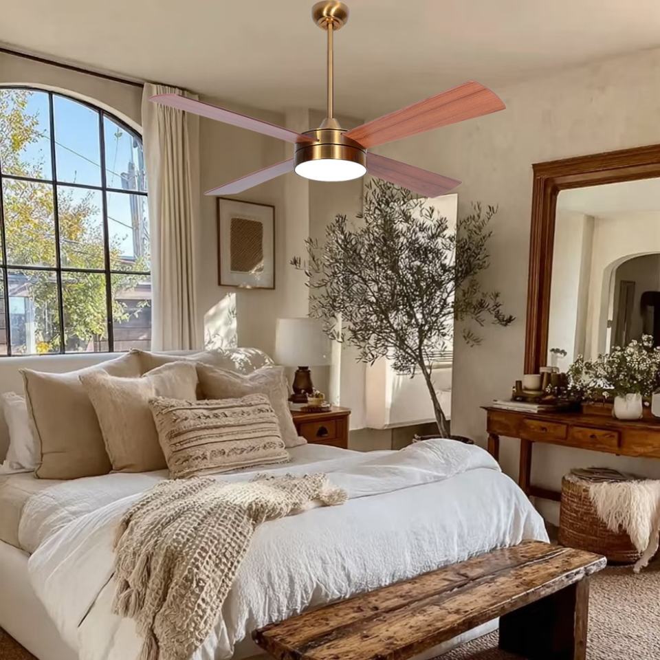 พัดลมเพดานในร่ม AC DC ไฟห้องรับประทานอาหาร52นิ้วควบคุมระยะไกล