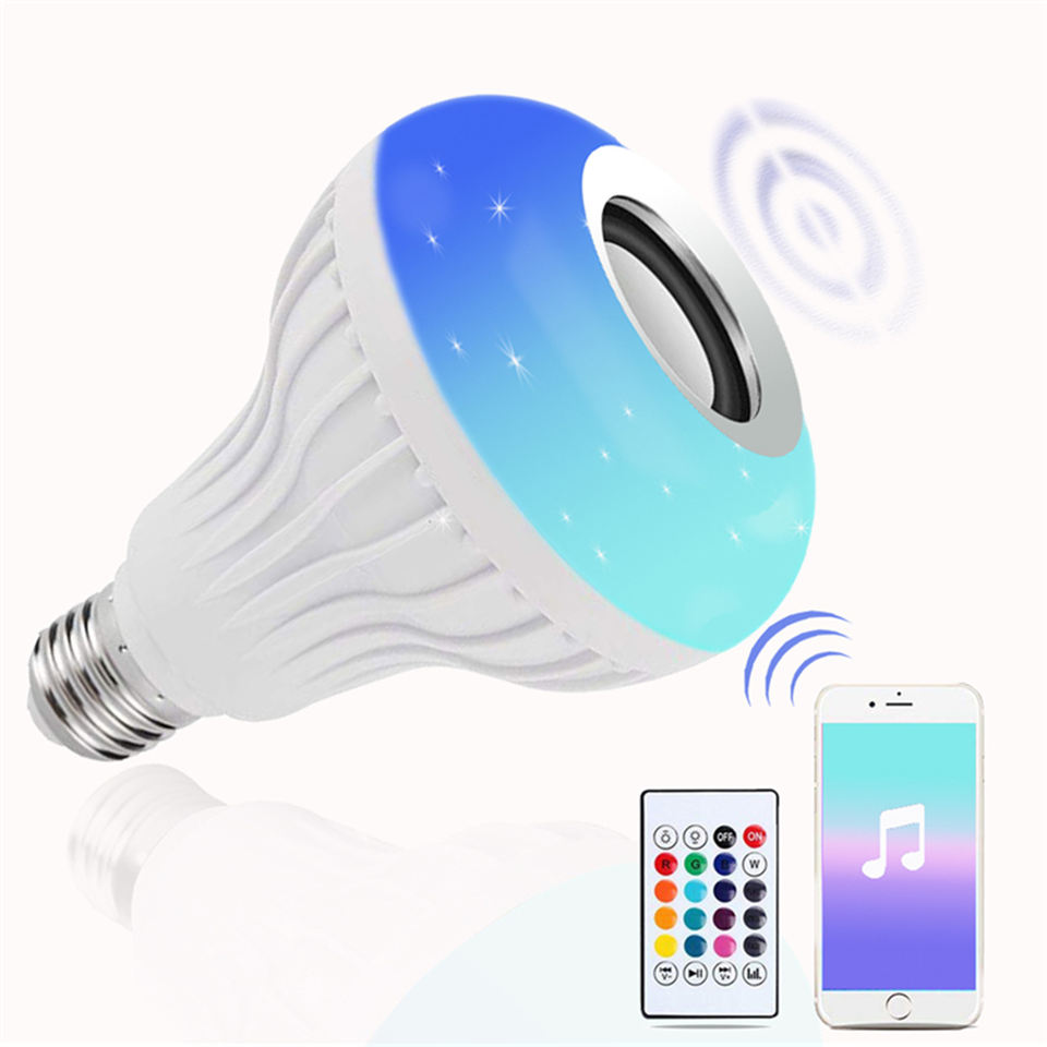 หลอดไฟ RGB 12W E27โทรศัพท์เครื่องเล่นเพลงอเนกประสงค์ควบคุมระยะไกลอุปกรณ์ส่องสว่างระดับมืออาชีพ