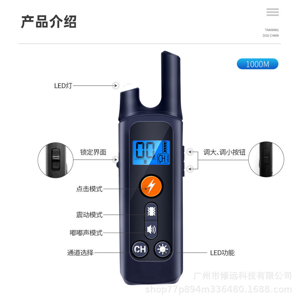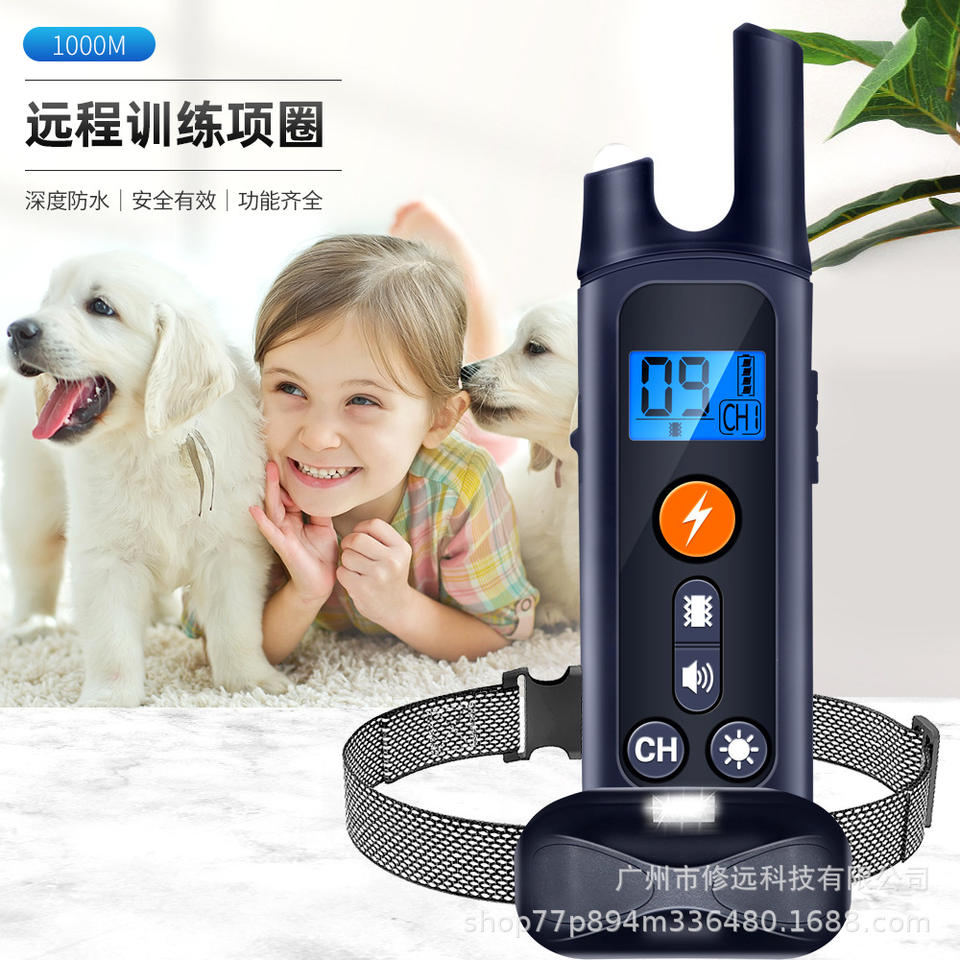 ปลอกคอฝึกสุนัขแบบรีโมท 1000M กันน้ำ พร้อมระบบช็อตไฟฟ้า ฟังก์ชั่นหลากหลาย