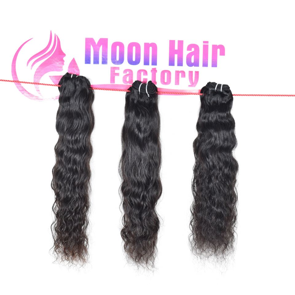 วิกผมธรรมชาติผมอินเดียสำหรับต่อหนังกำพร้าแบบไม่ผ่านกระบวนการผมแท้สีดำเป็นลอน