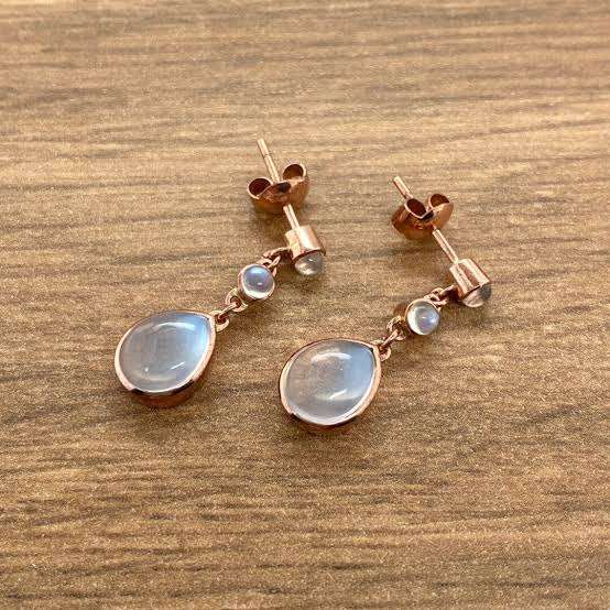 ต่างหูมูนสโตนแบบรีนิวเอล ทองเหลืองชุบทอง สไตล์วินเทจ ทำด้วยมือ ได้รับการรับรองจาก IGI ซูร์ยาน ไซนี สำหรับฤดูร้อน งานแต่งงาน
