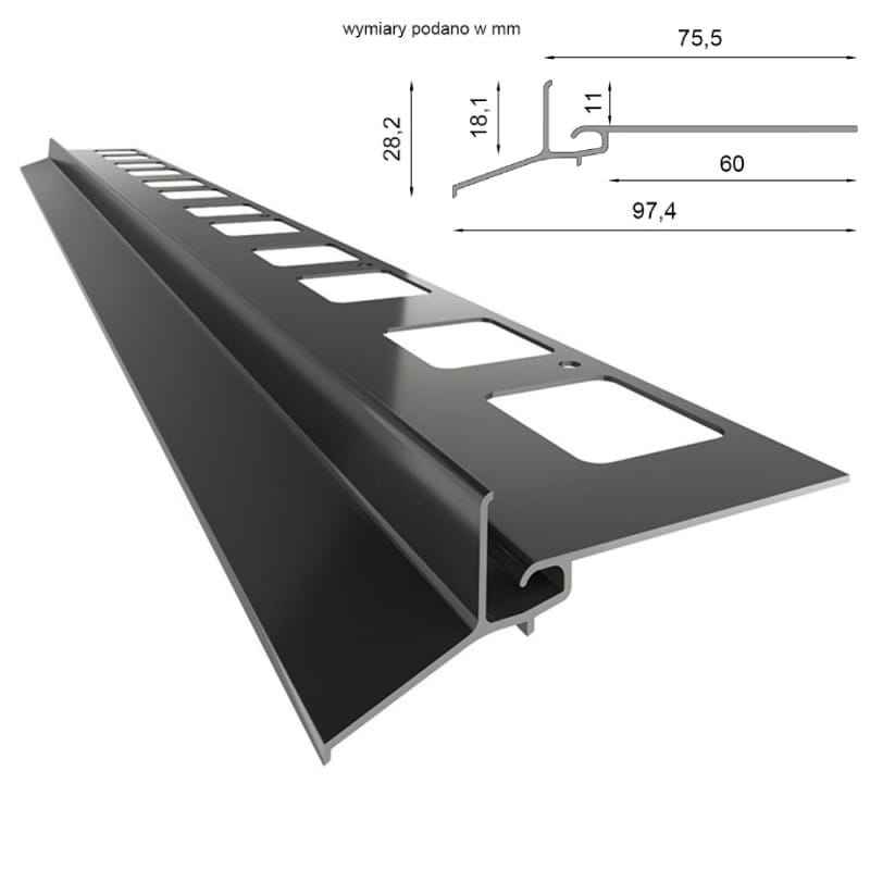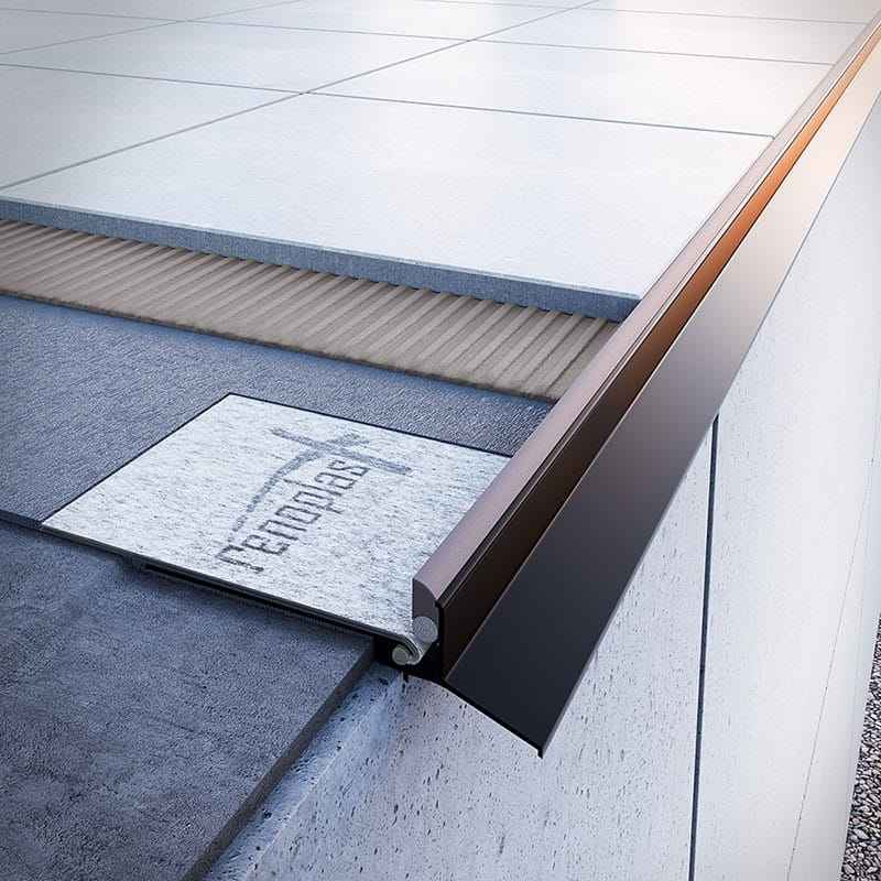 เรโนพลาสต์ ® โปรไฟล์ชายคาอะลูมิเนียม K102, การตกแต่งระเบียงและเฉลียง, พื้นกระเบื้องบนปูนกาว, ระบบระบายน้ำ