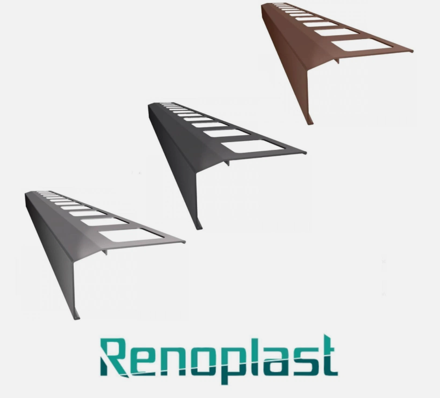 เรโนพลาสต์ ® โปรไฟล์ชายคาอะลูมิเนียม K301, การตกแต่งระเบียงและเฉลียง, พื้นกระเบื้องบนปูนกาว, ระบบระบายน้ำ