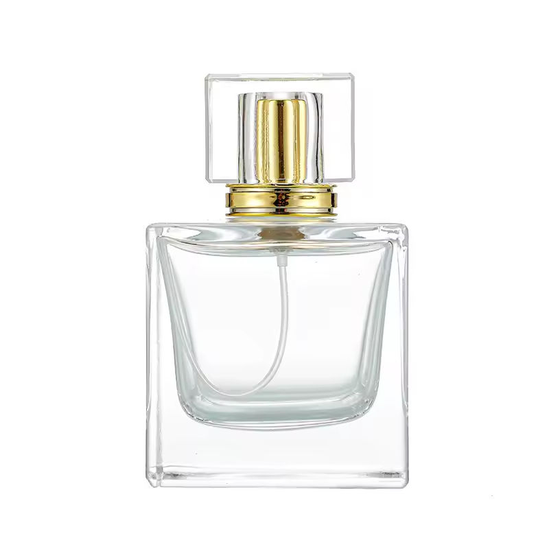 ขวดน้ำหอมทรงสี่เหลี่ยมก้นหนาแบบเติมได้ ขนาด 30 มล. 50 มล. สีชมพู ขวดสเปรย์น้ำหอมแก้วโรแมนติก