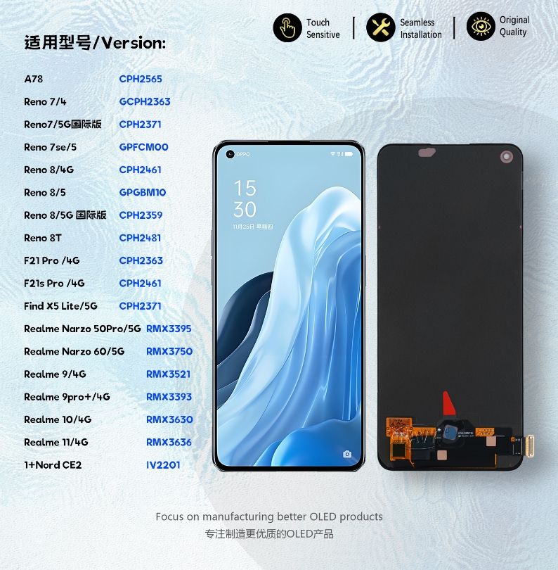 อะไหล่หน้าจอ LCD โทรศัพท์มือถือสำหรับ Reno7se OPPO 8 /realme narzo 50,9 10,11/F21 Pro /Find X5 Lite