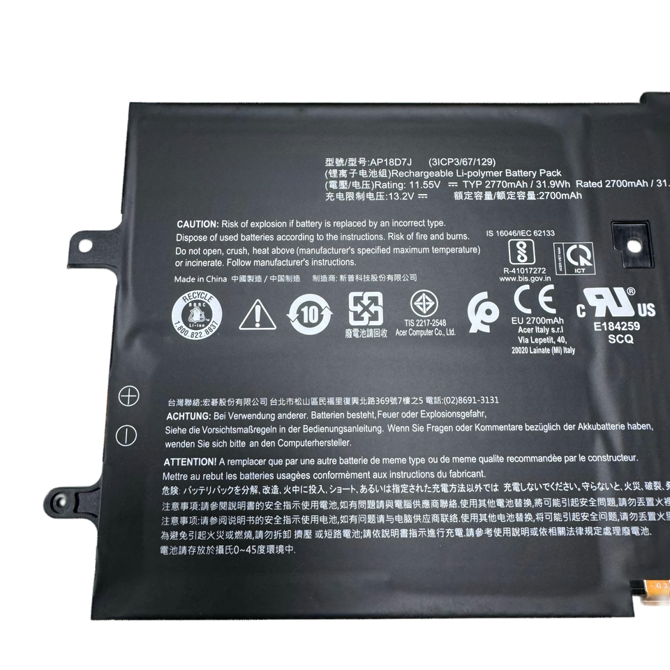 เปลี่ยนแบตเตอรี่แล็ปท็อป AP18D7J 31CP3/67/129สำหรับ ACER Swift 7 SF714-52T ชุดแบตเตอรี่โน๊ตบุ๊ค2019