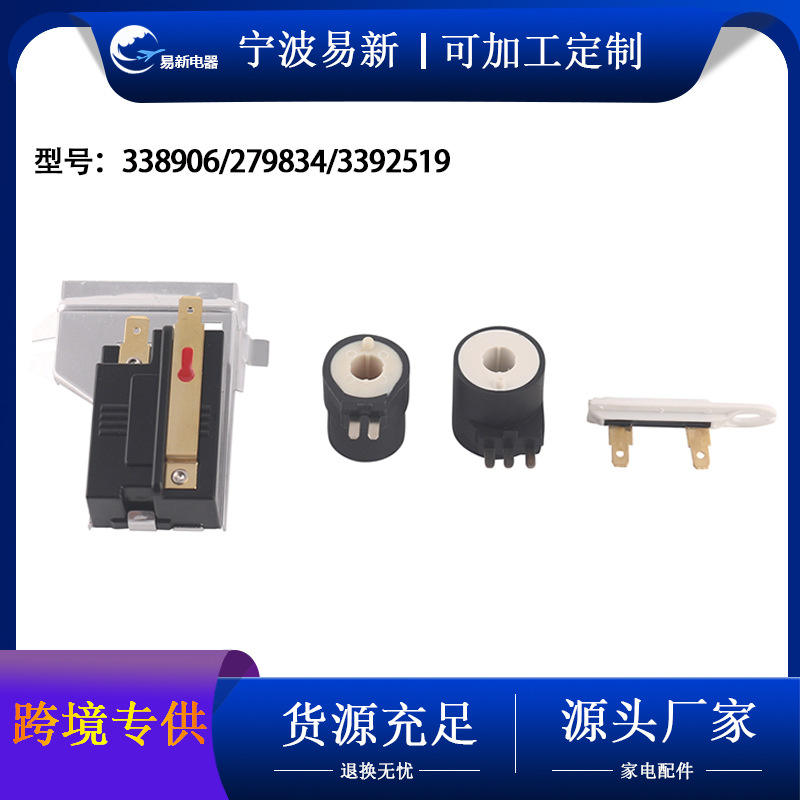 ชิ้นส่วนอะไหล่สำหรับเซ็นเซอร์ตรวจจับเปลวไฟในเครื่องอบผ้า 338906 279834 3392519 พลาสติกไฟฟ้า ติดตั้งง่าย
