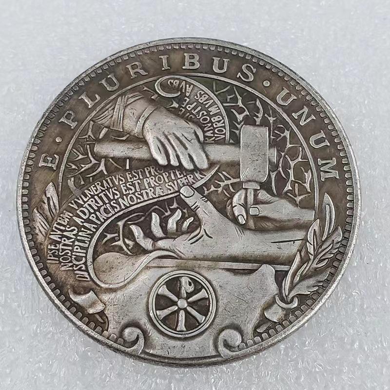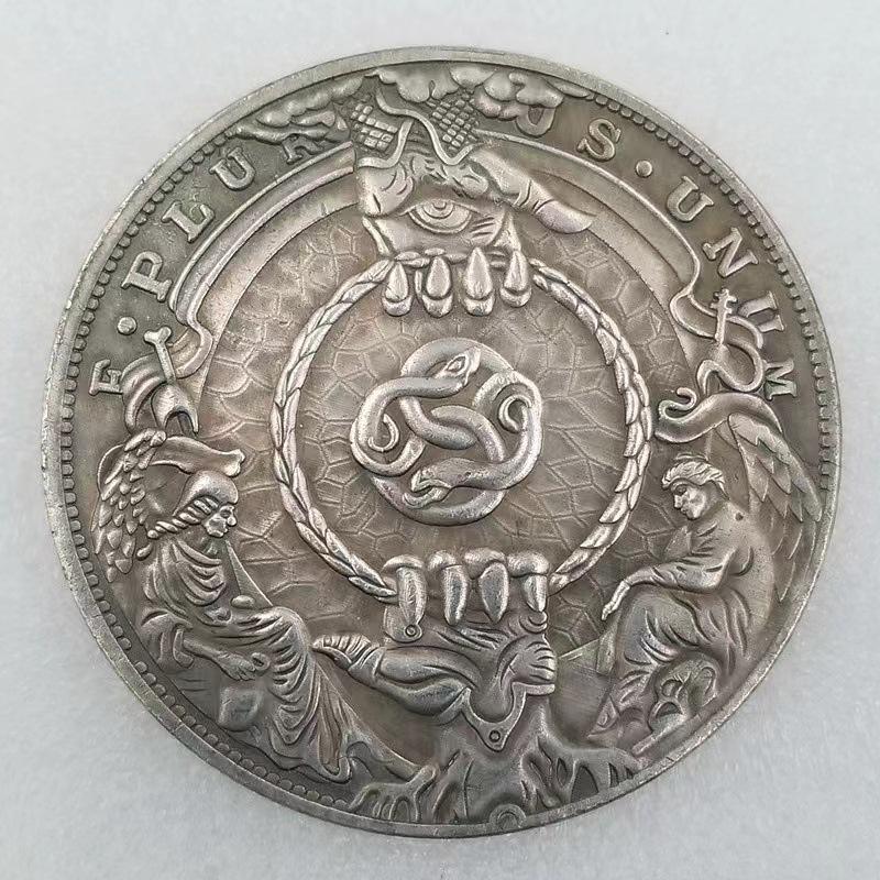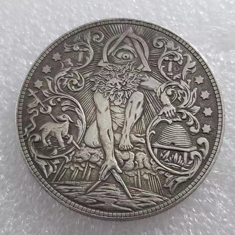แหวนเหรียญทองเหลืองจำลอง รูปแบบเหรียญฮอบบ์ วงแหวนแห่งชีวิต สวรรค์และนรก ดีและชั่ว ร้ายและดี เหรียญดอลลาร์อเมริกันโบราณ