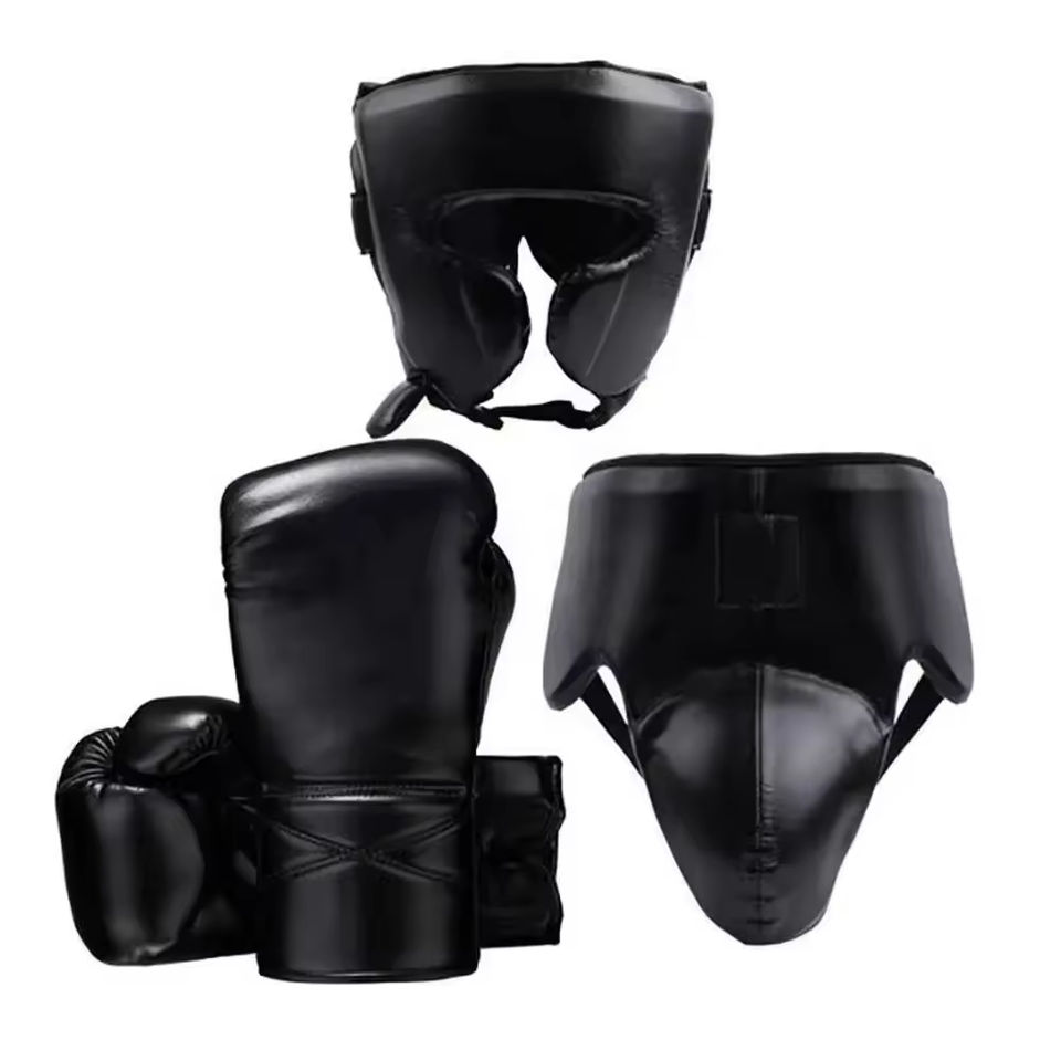 ชุดอุปกรณ์มวย ชุดถุงมือสำหรับการแข่งขันมวย ขายส่ง หนังแท้สีดำ ชุดมวยหนังแท้