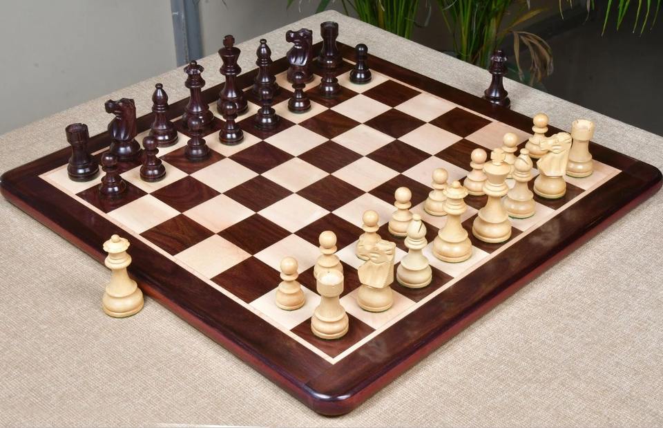 Reproduced French Lardy Weighted Wooden Chess Pieces Tournament Size 3.75 King Indian Rosewood And Boxwood At Best Price