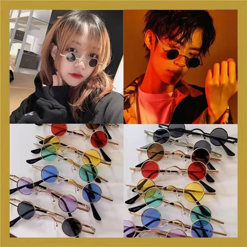 แว่นกันแดดทรงกลมเล็กสไตล์เรโทรสาธารณรัฐจีน กรอบโลหะ เลนส์สีดำ ป้องกันรังสียูวี 375 สำหรับทุกเพศ