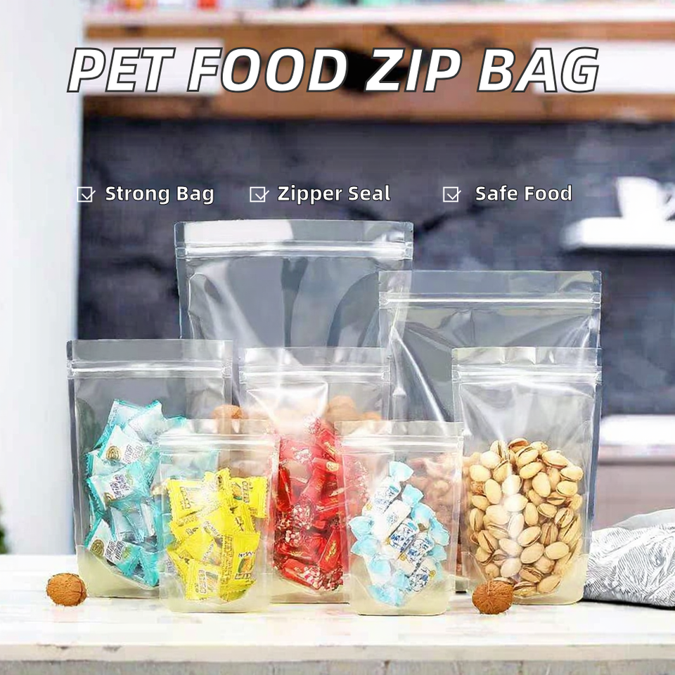 ถุงบรรจุภัณฑ์อาหารแบบซิปล็อคใสชนิดตั้งได้ สำหรับผงปรุงรส น้ำตาล ทำจากฟิล์ม PET โพลีเอสเตอร์เกรดอาหาร สำหรับอาหารสัตว์เลี้ยง
