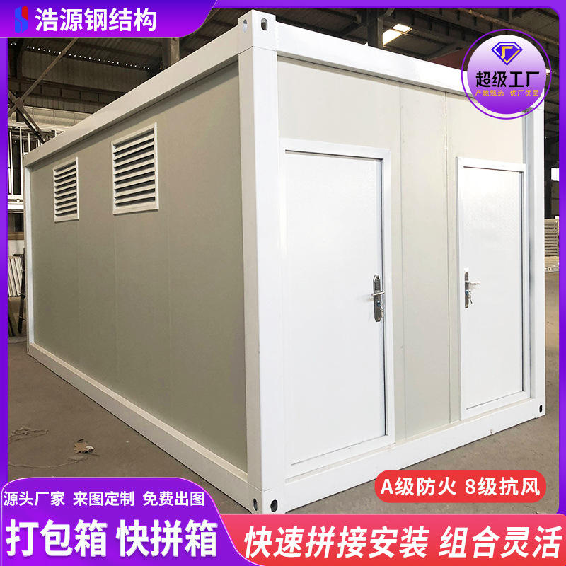 โครงสร้างบ้านสำเร็จรูปแบบตู้คอนเทนเนอร์เคลื่อนที่ ห้องพักอาศัย สำนักงานแบบถอดประกอบได้ ปรับแต่งได้ พร้อมบรรจุภัณฑ์สำหรับขนย้ายกลางแจ้ง