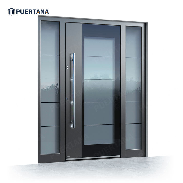 ที่อยู่อาศัยภายนอกอลูมิเนียมด้านหน้ากระจกประตูทางเข้าหลักการรักษาความปลอดภัยรายการประตูวิลล่าบ้าน