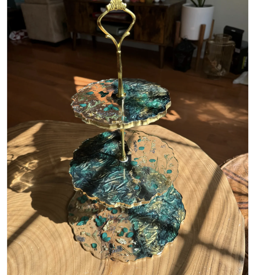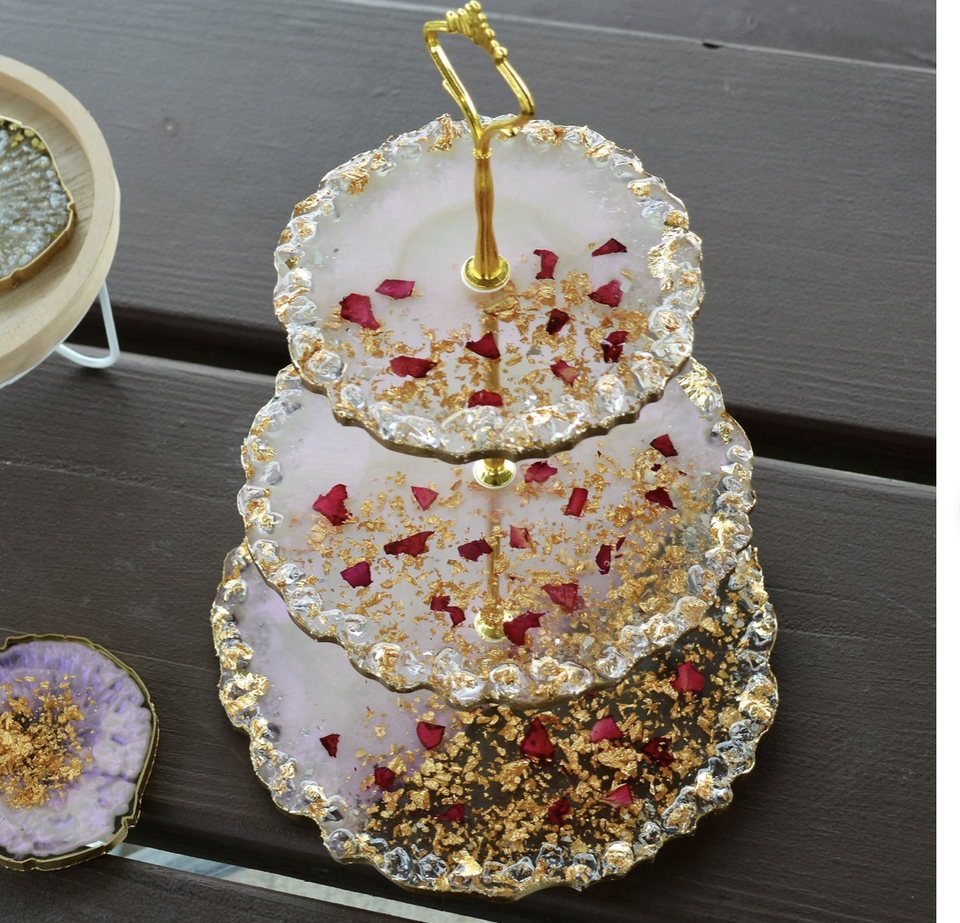 ที่วางเค้กเรซิ่น3ชั้นชั้นพร้อมที่วางทองเหลืองสำหรับตกแต่งเค้กเรซินจากอินเดีย