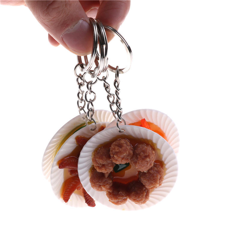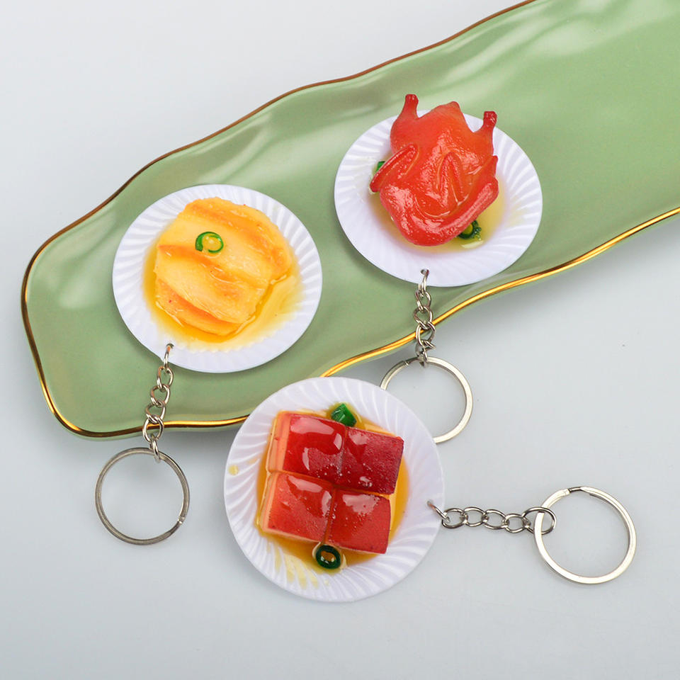 พวงกุญแจจานเรซิ่นขนาด 5.5 ซม. รูปอาหารจีน หมูตุ๋น ของเล่นอาหารพีวีซี ของเล่นอาหารเหมือนจริง