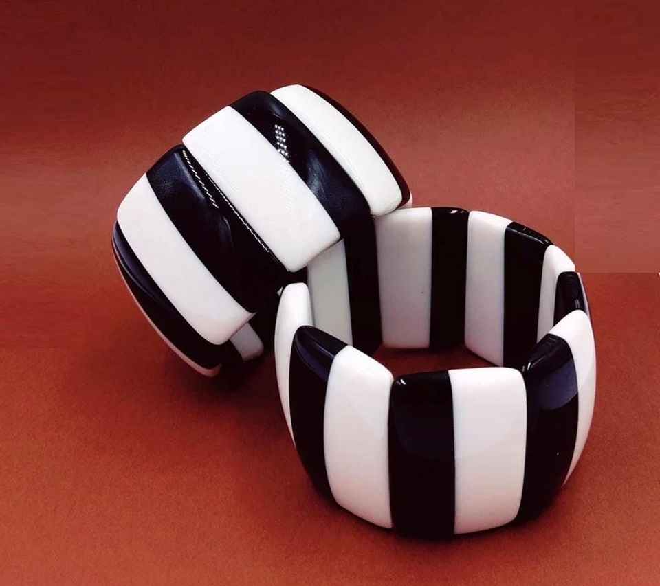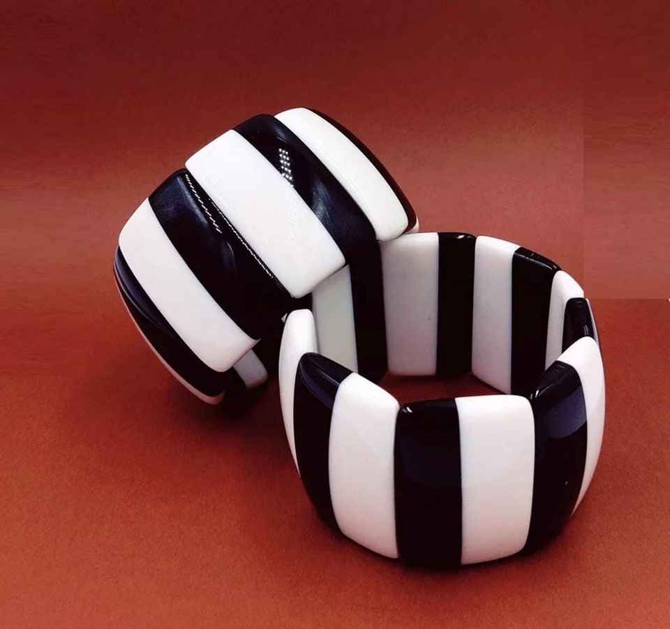 กำไลข้อมืออะคริลิกเรซินแบบวินเทจสีดำสีขาวหลากสีสำหรับผู้หญิงดีไซน์สี่เหลี่ยมที่ไม่สม่ำเสมอสำหรับของขวัญวันครบรอบ