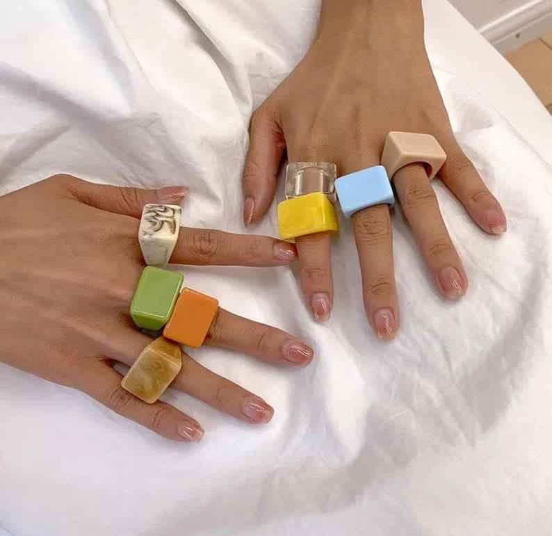แหวนเรซิ่นอะคริลิกรูปทรงกลม แหวนทำมือ แหวนแห่งความรัก เครื่องประดับสำหรับงานปาร์ตี้ผู้หญิง ขายส่งราคาดีที่สุด