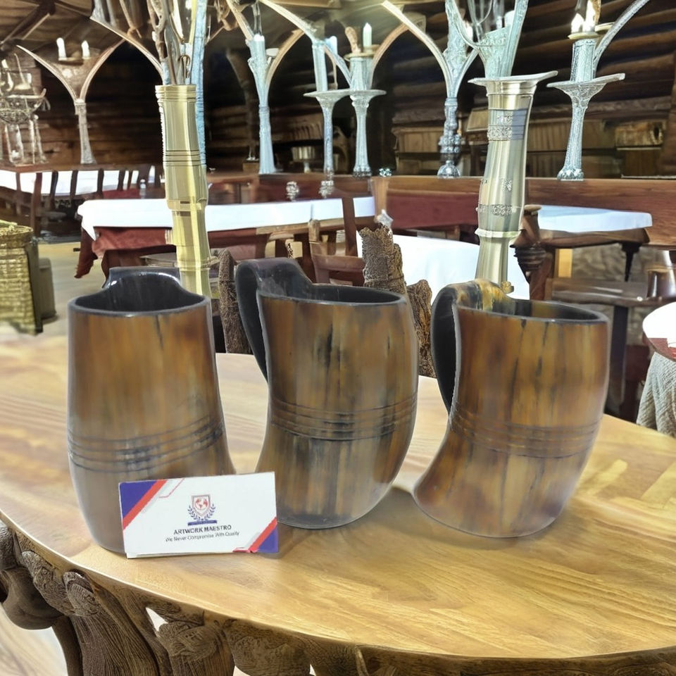 แก้วเบียร์ทรงกระบอกทำจากเรซิ่นและเขาควาย สำหรับสไตล์นอร์ดิกแท้ๆ แก้วเขาควายธรรมชาติใหม่สำหรับเบียร์ มี้ด ไวน์ และเครื่องดื่มแอลกอฮอล์เย็นๆ