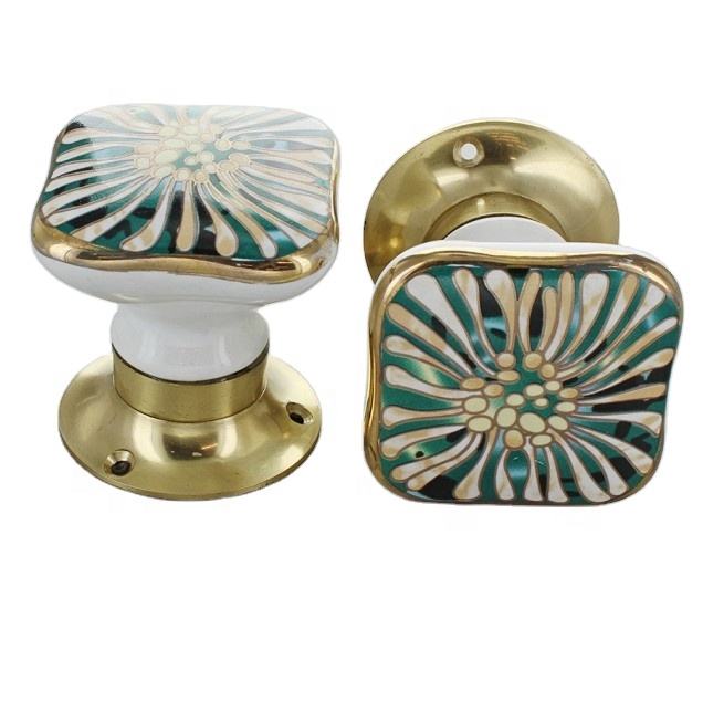 รูปแบบปุ่มเรซินวินเทจที่สวยงาม Mortice ล็อคเซรามิกสีทองทาสีมือจับลูกบิดประตู [MLH 108]