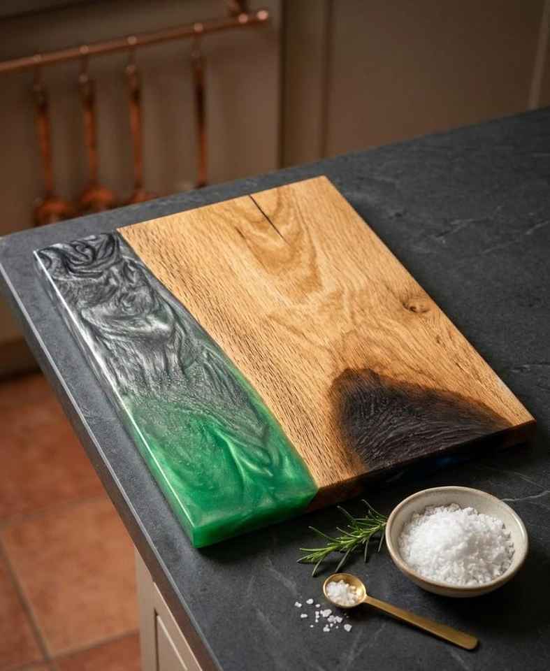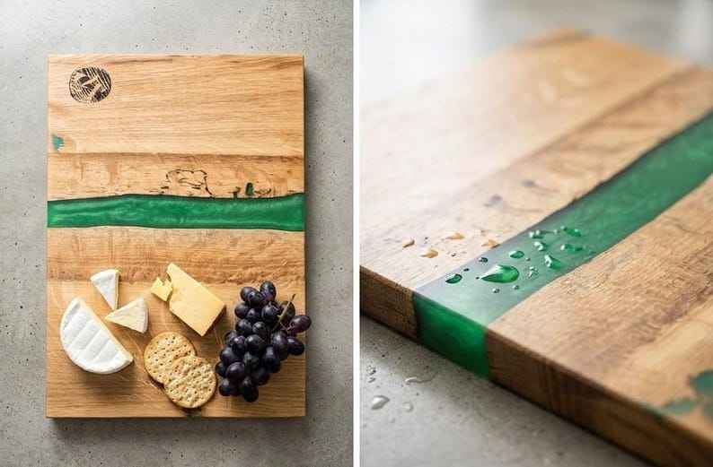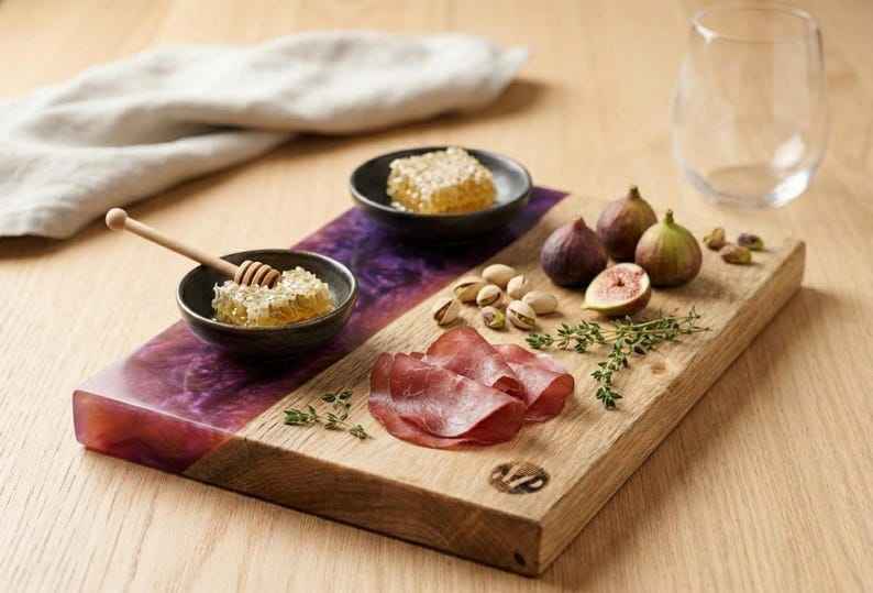 เขียงชีสเรซิ่น ไม้บีชเคลือบอีพ็อกซี่สำหรับครัว แผ่นไม้และเรซิ่นสำหรับตัดและเสิร์ฟ